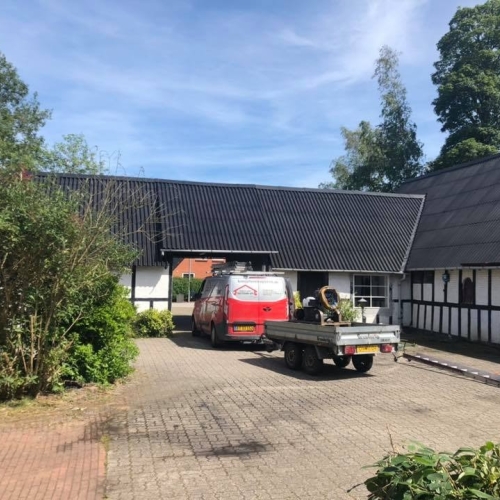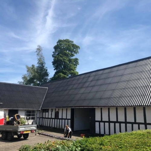 I Stilling havde Michael og Vibeke et smukt bindingsværkshus, hvis eternittag var hårdt angrebet af alger og mos. Derudover havde et par eternitplader og rygningen taget skade af mange års påvirkning fra vind og vejr. De ringede efter Kronjyllands Tagteknik til at få taget til at stå flot igen.