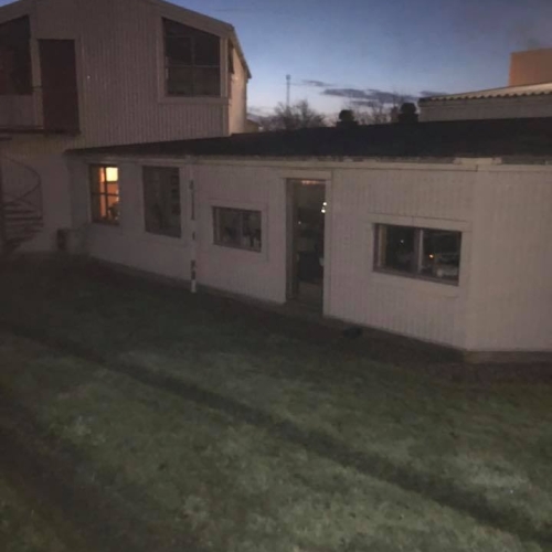 Vi rensede stålfacaderne med en professionel højtryksrenser. Det fjernede både snavs og alger, som havde vokset sig fast. Derefter algebehandlede vi facaden for at sikre, at den holder sig pæn og ren så lang tid som muligt.